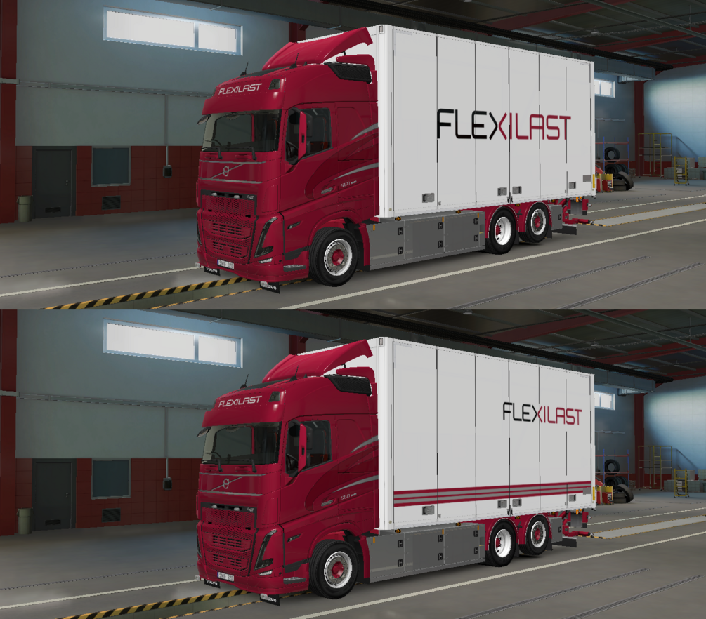 ETS2 Volvo FH5 Flexilast (Jerry Ohlssons Åkeri AB style), it's not 100% accurate, but you will get 2 types of skin for both truck and trailer. Made in 8K resolution.